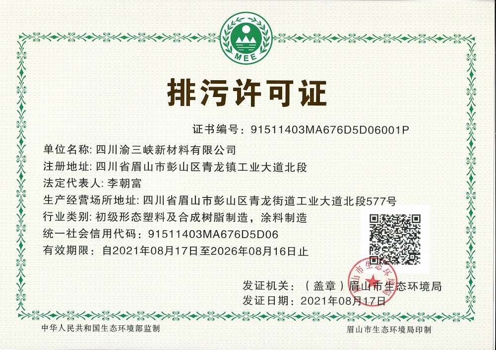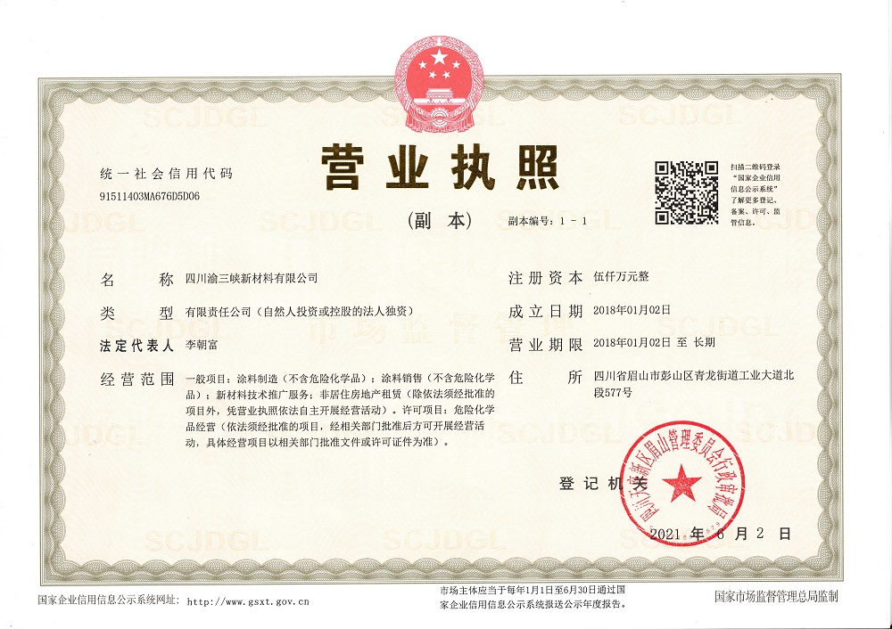 1. 企业名称:四川渝三峡新材料有限公司
